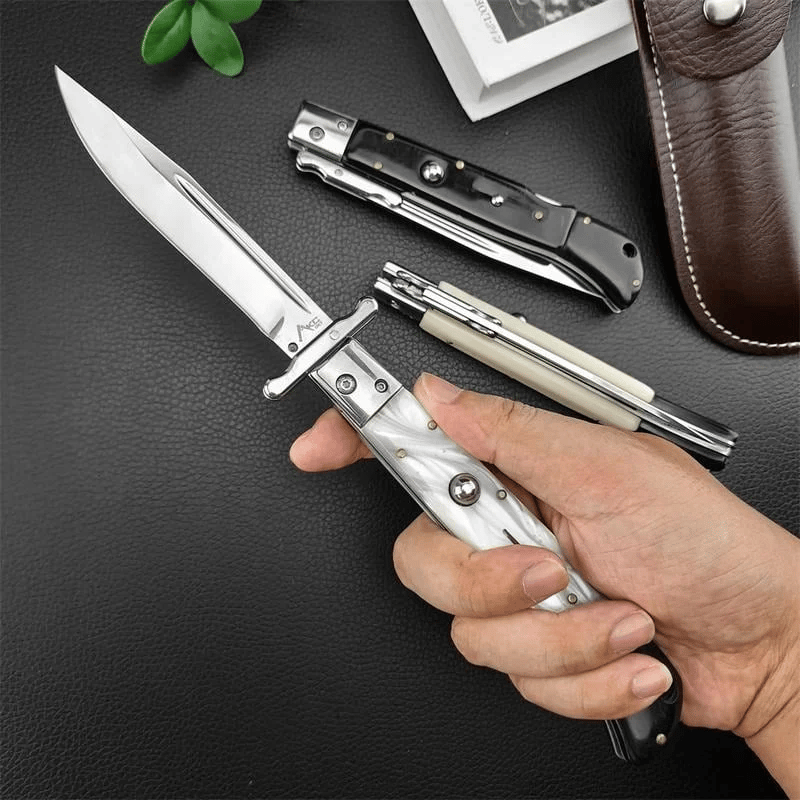 Beautiful Pure Handmade Old School Italian Stiletto Pocket Knife with stainless steel bolsters, a single edged bayonet style blade.