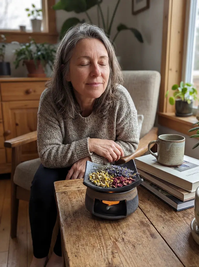 You just light the candle, warm the herbs, and let your nervous system remember what calm actually feels like.